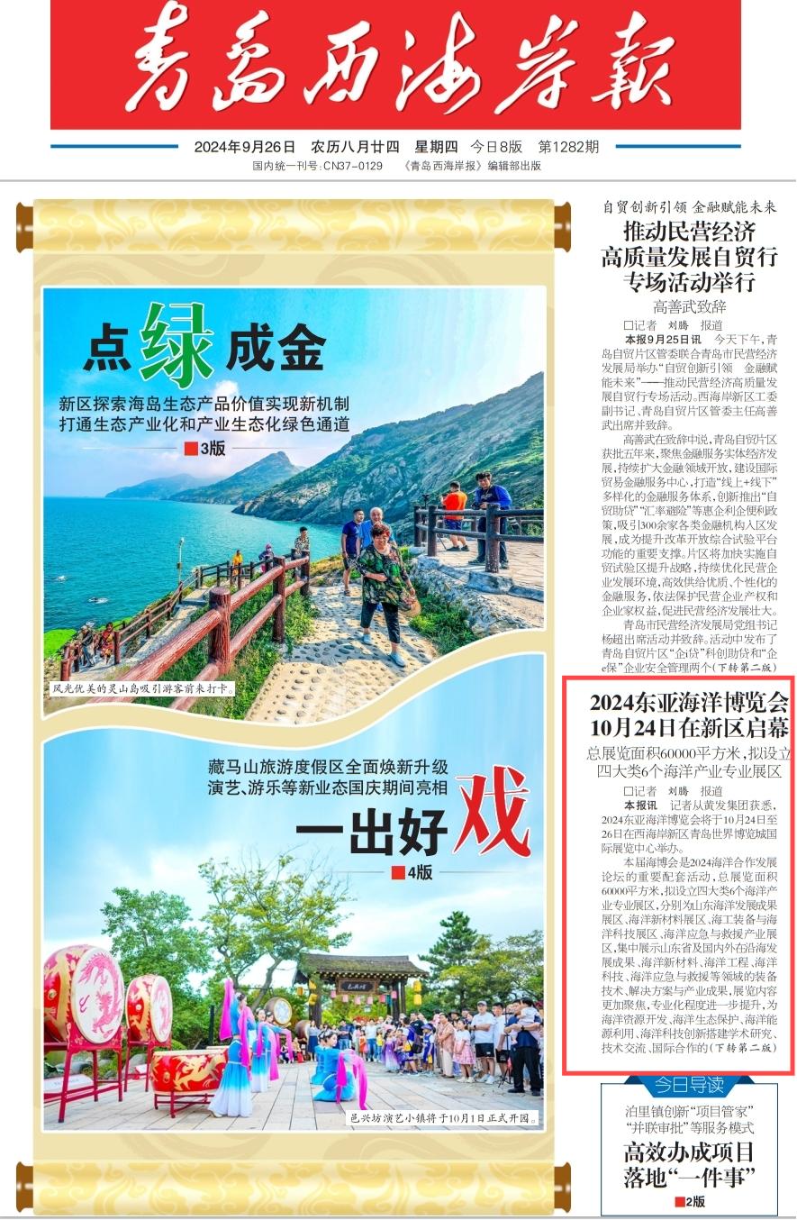 【青島西海岸報】2024東亞海洋博覽會10月24日在新區(qū)啟幕